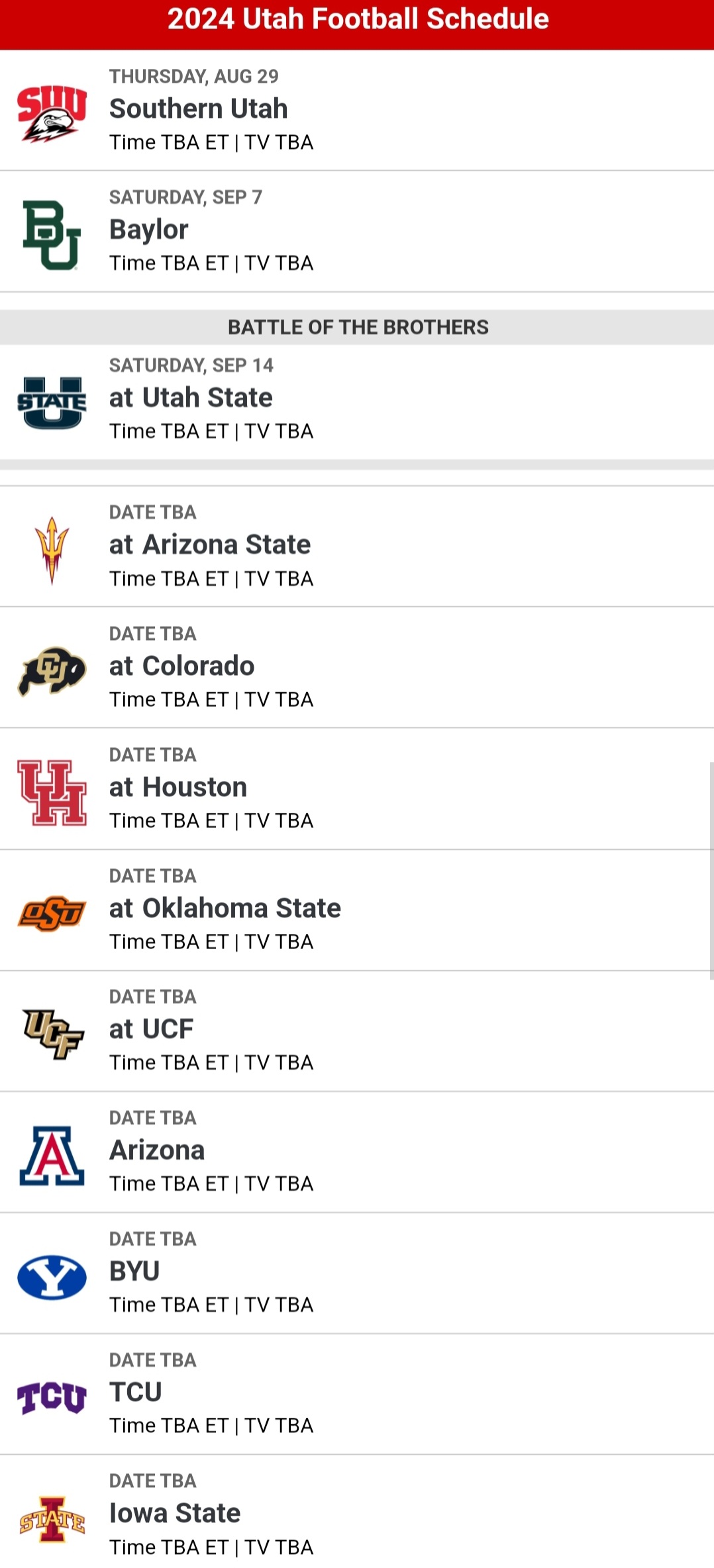 Source : utahutes.comutah Football Schedule | Pac 12